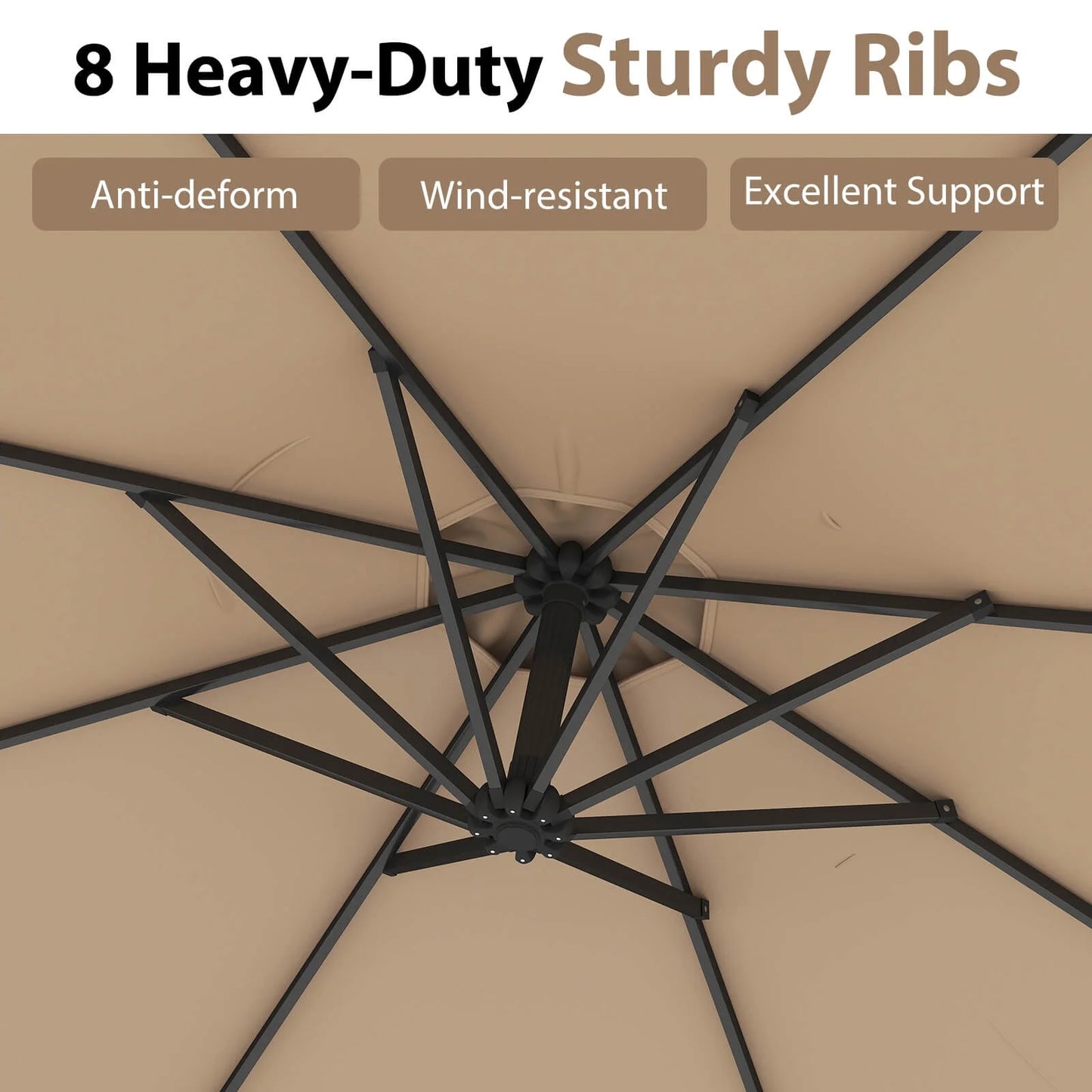 8 firm steel ribs construction support the canopy stably