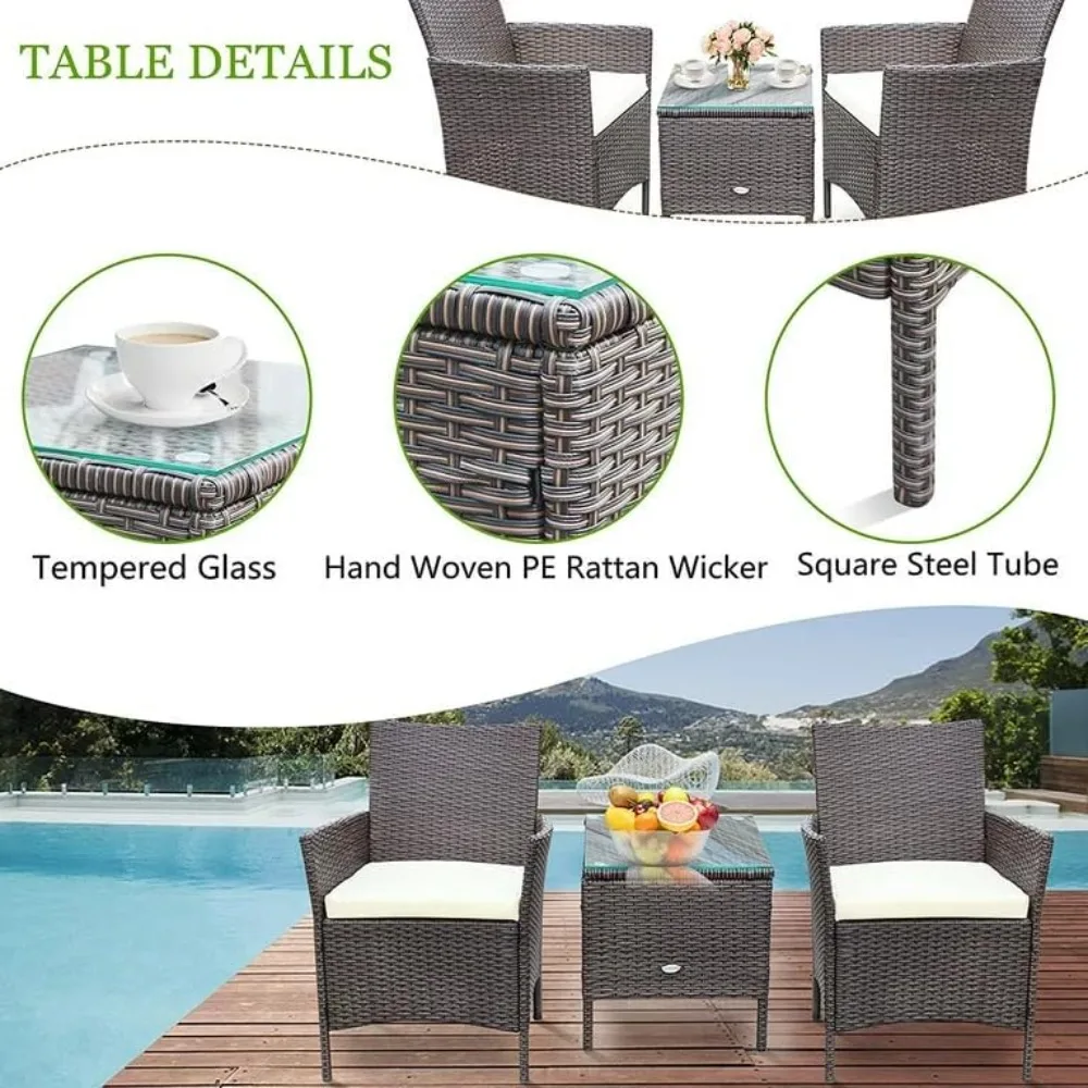 - Easy to Assemble: The 3 pieces patio furniture sets is easy to install.To ensure that you can install this outdoor furniture quickly, it comes with full assembly tools and instructions.The Patio Set is great for a small garden or balcony and provides a relaxing place to enjoy time outdoors.