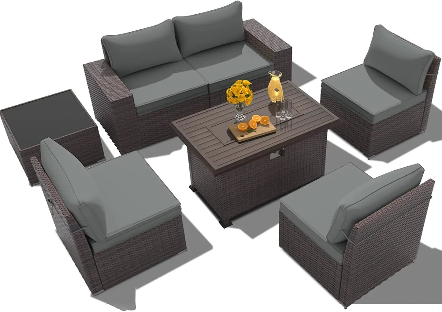 7 Pieces Outdoor Patio Furniture Set with 43" Fire Pit Table Sets Outdoor Furniture Patio Conversation Set (Grey)