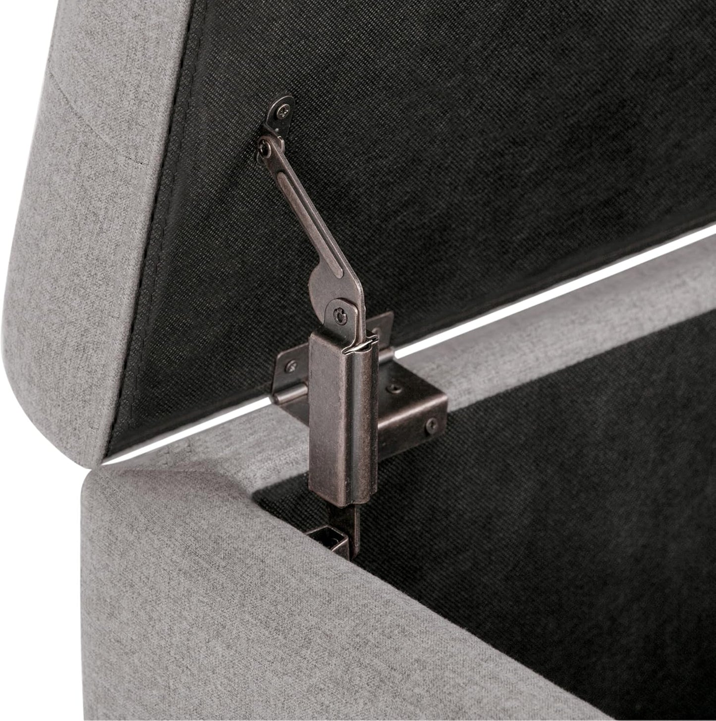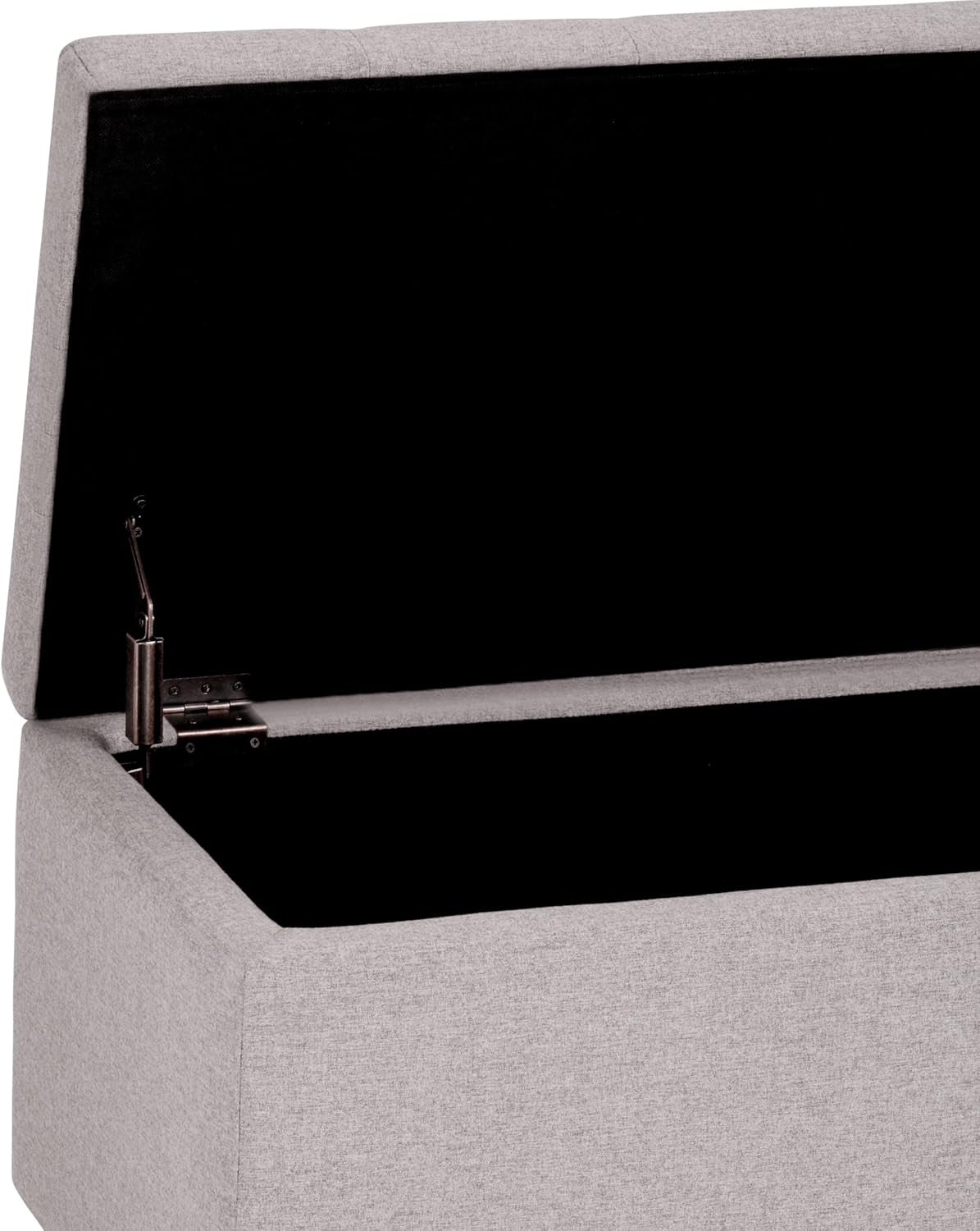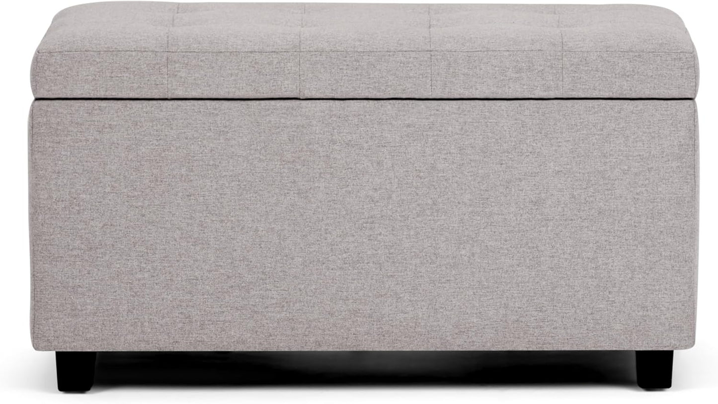 Cosmopolitan 34 Inch Wide Transitional Rectangle Storage Ottoman in Cloud Grey Linen Look Fabric, Assembled, for the Living Room, Entryway and Family Room