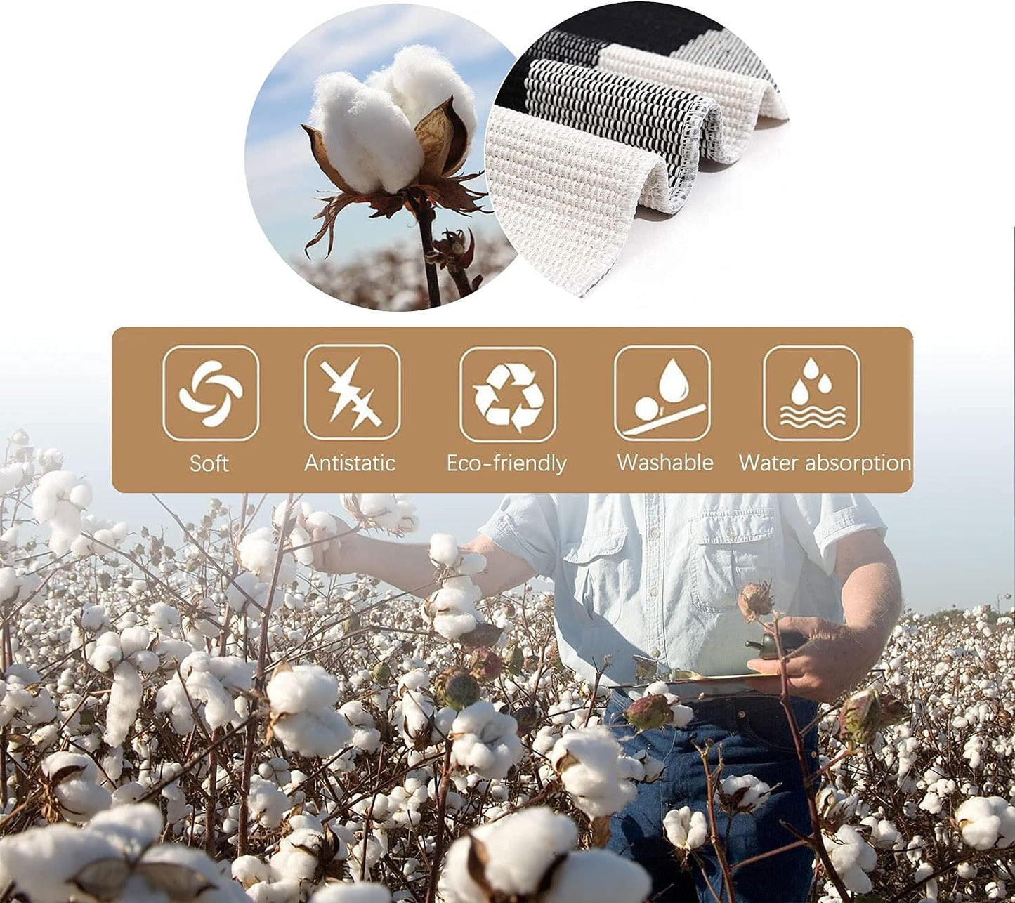 - 100% COTTON: Hand-woven, eco-friendly fabric, anti-static, soft and durable cotton rug, comfortable, excellent water absorption, will not harden with long-term use.